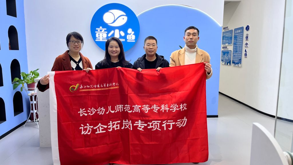 为贯彻落实省教育厅关于“访企拓岗”促就业专项行动工作部署🤸🏼‍♂️,11月21号下午👨‍👩‍👧,招生就业处副处长高凡♨️、张柱老师以及学前教育学院银铃老师一行人走访了开福区童小鱼水育拓展中心(隶属于长沙晓森教育科技有限公司)。