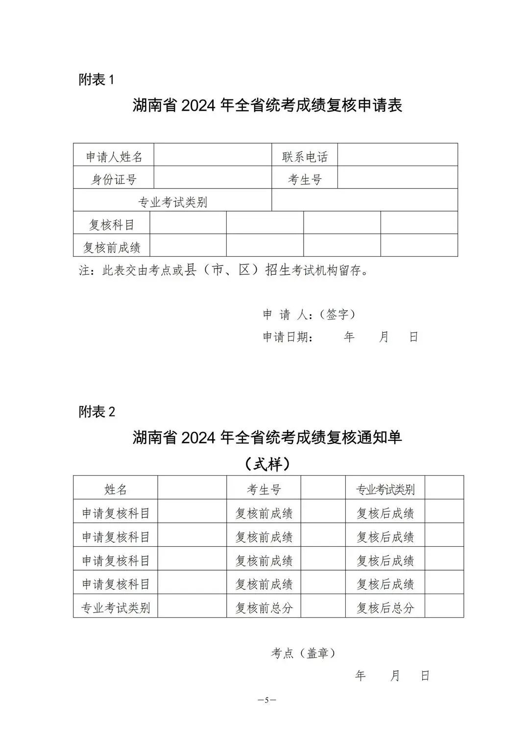 附表💇♂️:1.湖南省2024年全省统考成绩复核申请表
