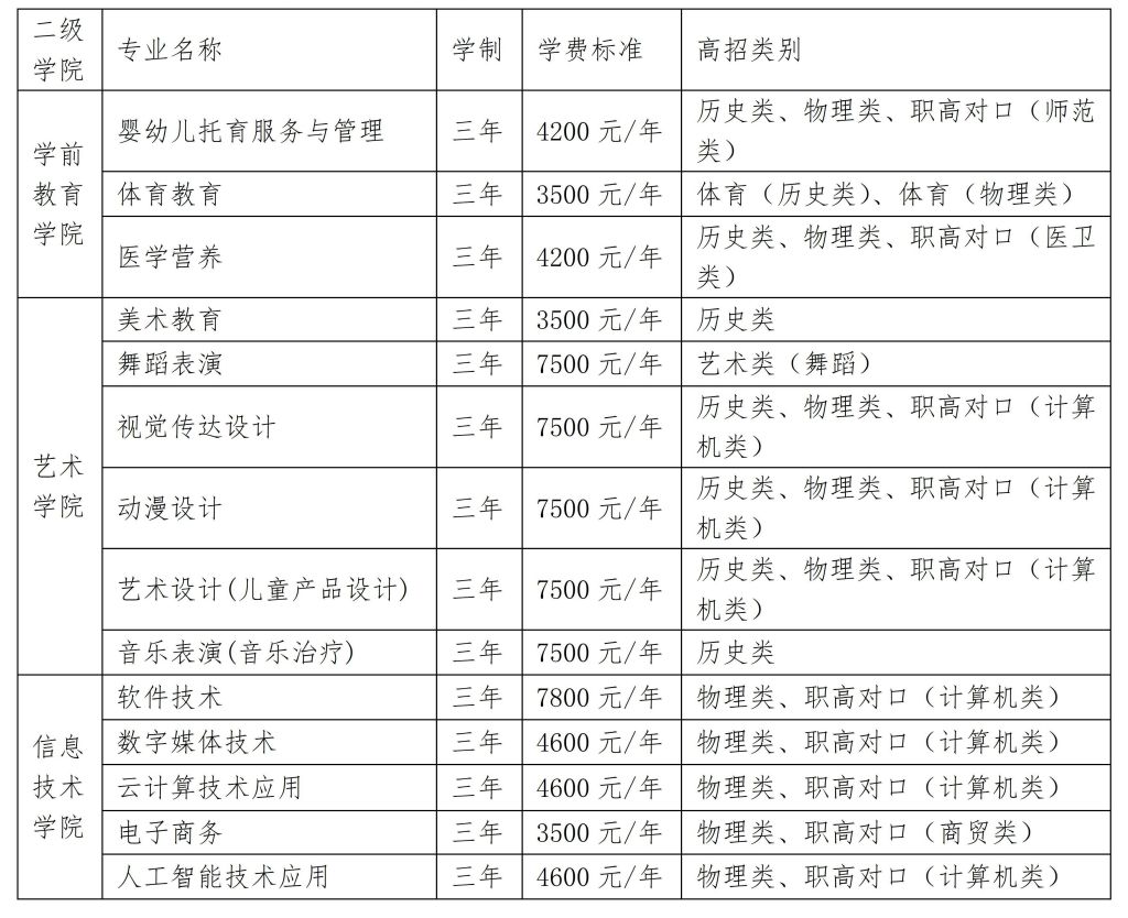第十四条 学校2025年招生专业如下表,各专业最终学费标准以2025年湖南省物价主管部门审核为准。