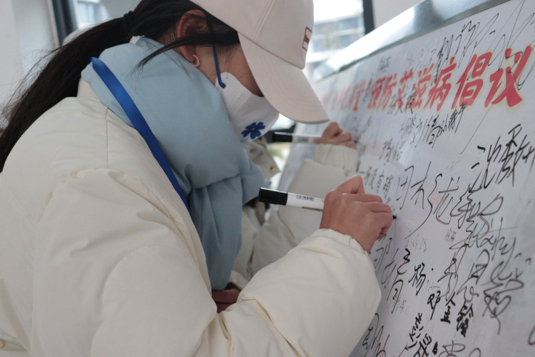 活动当天团委会青工部在德馨楼大厅设立“防艾倡议书主题签名墙”,号召同学进行签名并拍照留念,同时在全校粘贴防艾宣传海报,分发防艾宣传手册,将艾滋病预防宣传范围扩大了全体学子,增强了艾滋病预防的宣传力度;全体同学积极参与了“湖南省大学生防艾知识网络竞赛”,通过线上答题,进一步巩固了艾滋病的理论知识,为艾滋病的预防奠定了良好的基础。