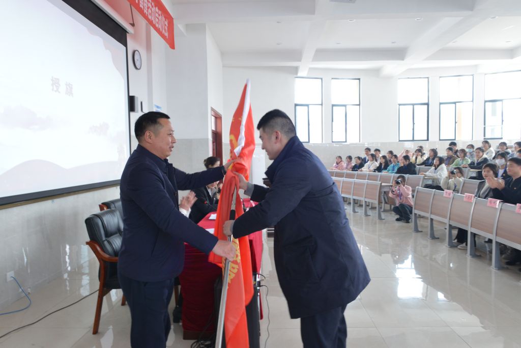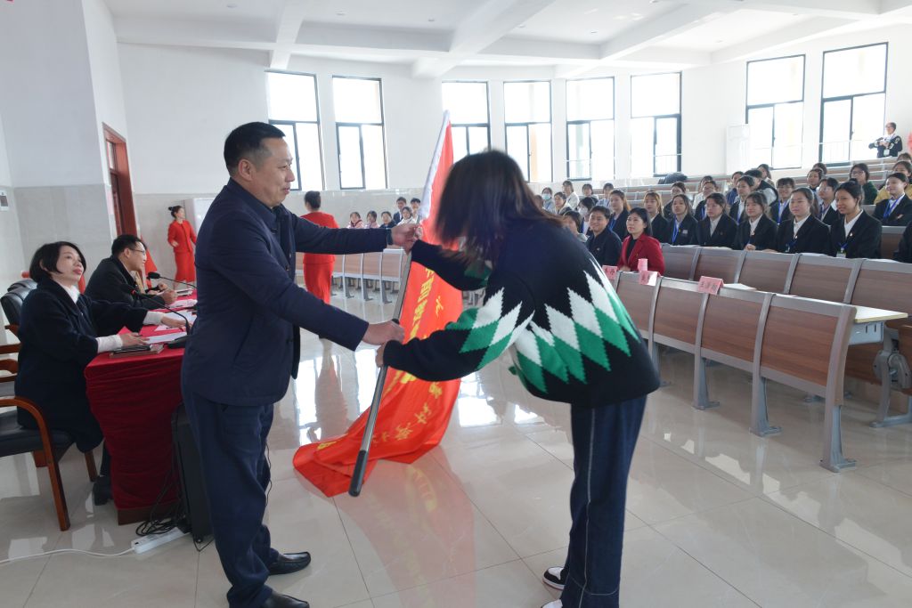 张学锋宣读各学院志愿服务队队长名单。李毅向各志愿服务队授旗。