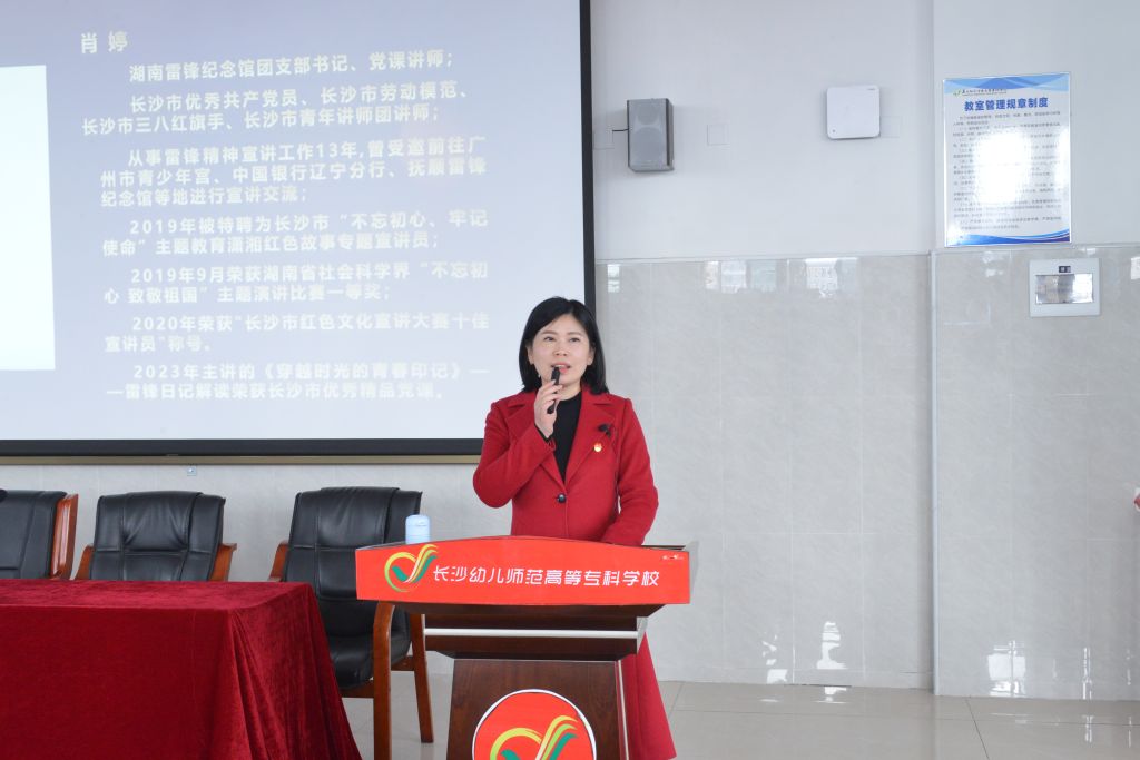 仪式结束后,湖南雷锋纪念馆金牌讲师肖婷作题为《<穿越时光的青春印记>—雷锋日记解读》讲座。她带领全体同学从雷锋坎坷的人生道路、情感的升华、思想的成熟、雷锋日记的续写四个方面解读雷锋日记,将雷锋的感恩精神升华为崇高的理想、坚定的信念,把个人的追求融入党和国家的事业之中。通过讲座,同学们更加深刻地领悟雷锋精神的内涵,感受到雷锋精神的光芒,体会到雷锋精神的意义,在师生群体中营造了“人人学习雷锋,个个争当雷锋”的志愿服务氛围。