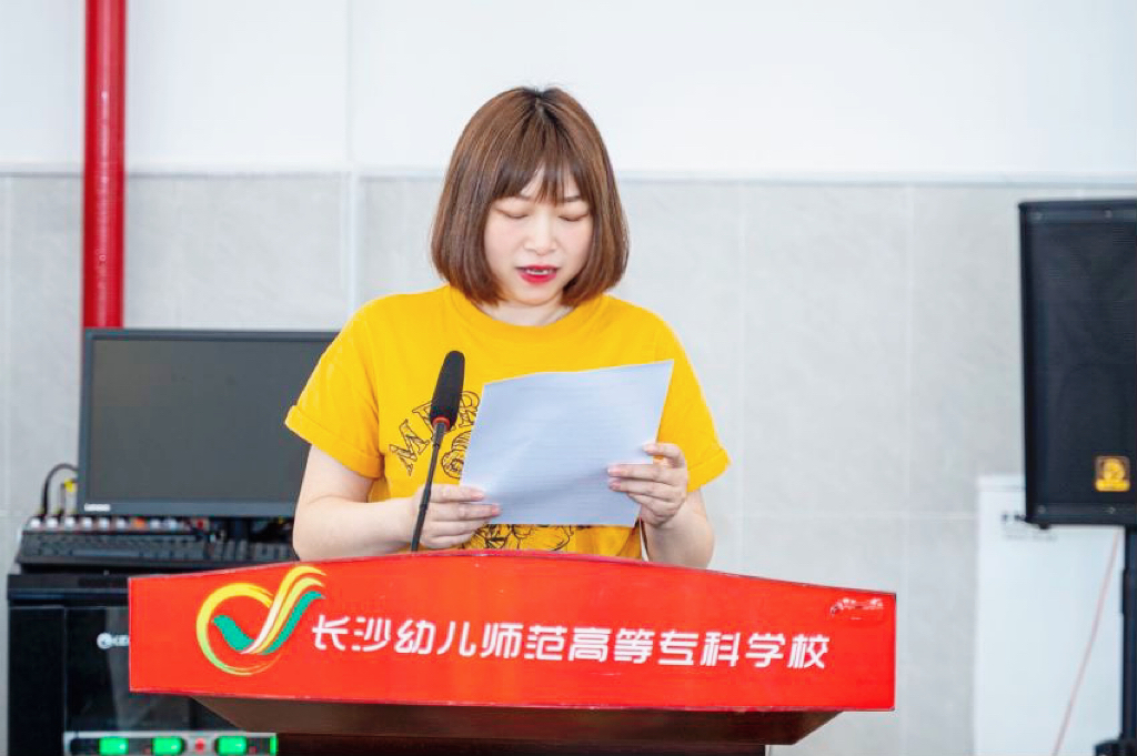 长沙市芙蓉区万婴东外滩幼儿园康珊作为学员代表发言,她表达了对市教育局、学校和长沙市培训中心的感谢,并代表全体学员承诺:一是把握机会,明确学习目标,做勤思奉贤之人;二是主动学习,严守培训纪律,强化自我管理,做主动学习之人;三是落实行动理论,提升自身专业能力,做美丽践行之人。