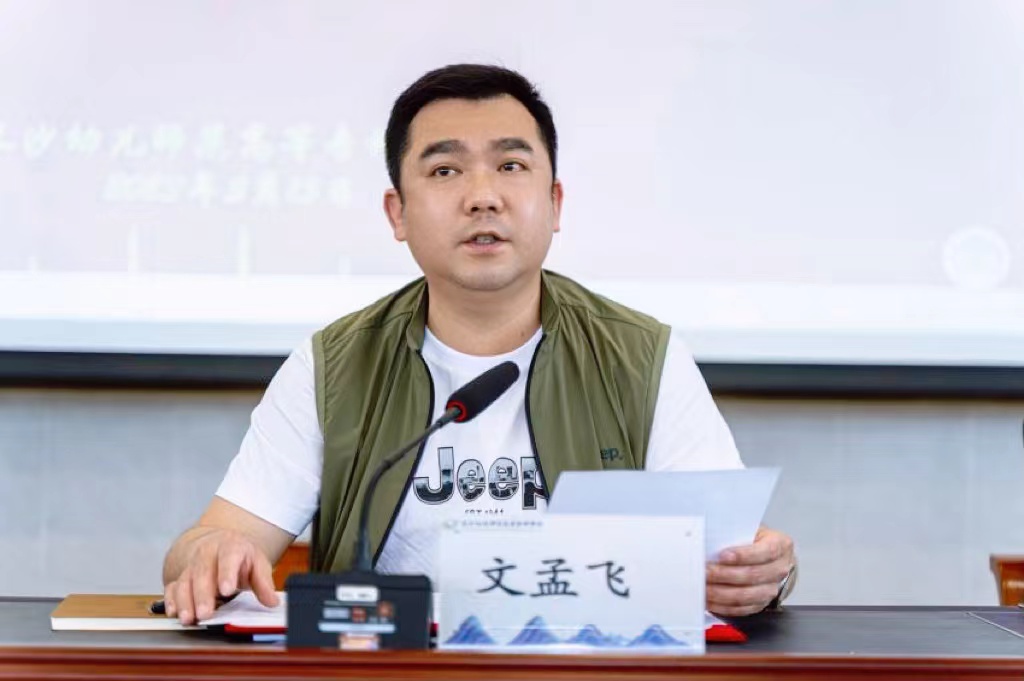 文孟飞代表学校向参加此次培训班的各位园长致以热烈的欢迎。他从学校历史底蕴、红色印记、办学特色、社会贡献以及未来发展前景等方面介绍了学校的基本情况;随后他从学校致力于儿童发展、深耕幼儿教育以及专业技能比赛和科研等方面重点强调了学校学前教育专业的优势;最后他希望这次培训顺利开展,嘱托要借此培训平台加强与各个幼儿园的合作,深化产教融合,共同推动学前教育事业更好、更快地发展。