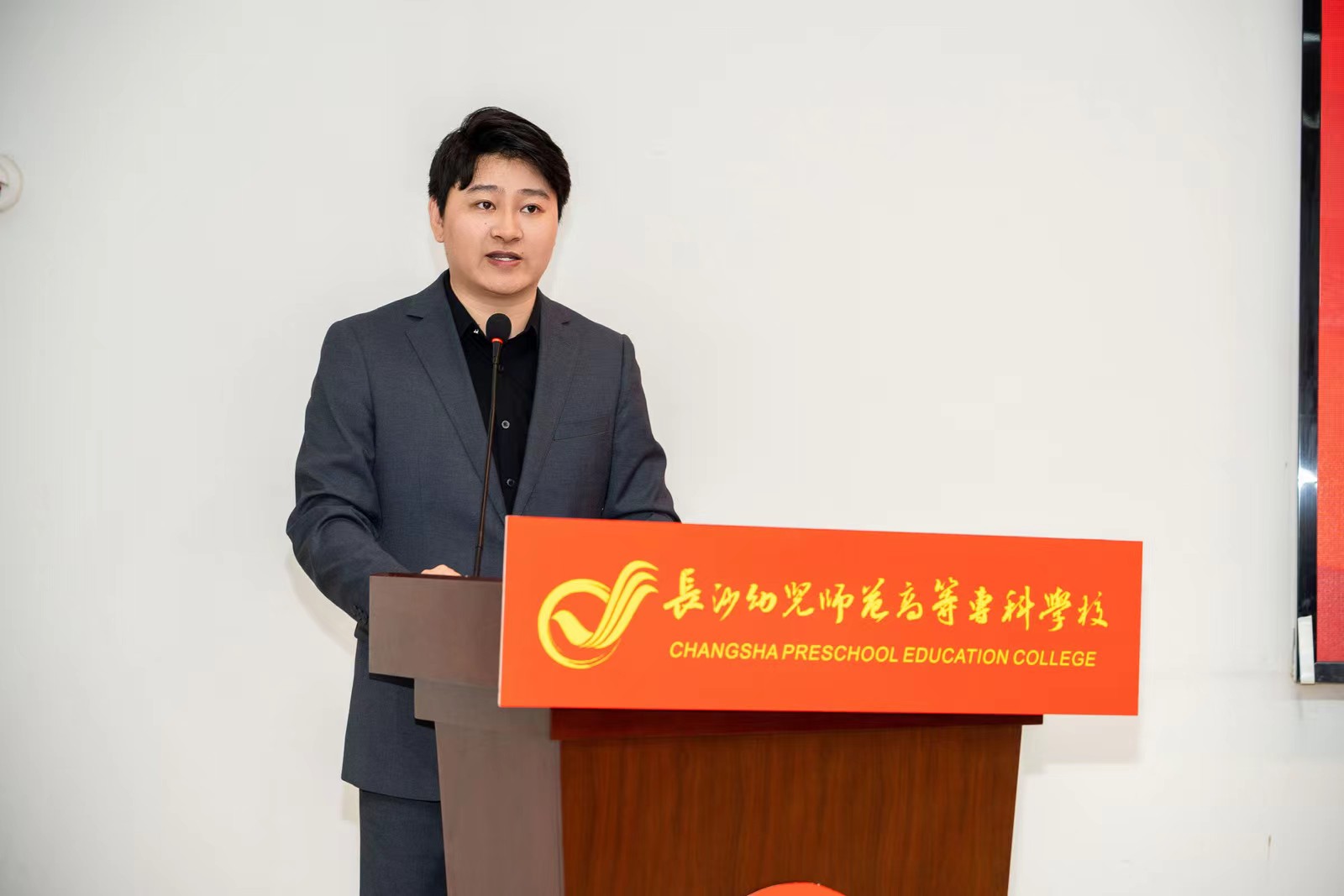 望城区教育局万润滨江幼儿园胡志远老师作为学员代表发言,他表达了对本次培训的憧憬和期待,承诺会把握学习的机会,在本次培训中会严格遵守培训要求,进一步内化学习的知识,助推所在园所园本教研的发展。