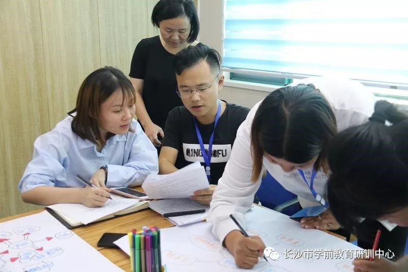 下午我们聆听了长沙幼儿师范学校林静老师对于《幼儿园主题教育活动的设计与指导》的专题分享。林静老师用哲学三问的方法切入主题,从什么是幼儿主题教育活动、为什么要开展主题教育活动以及如何开展三个方面进行了详细的介绍。老师们从围绕一个“萝卜蹲是否适合放在以萝卜为主题的教育活动下”的小问题展开讨论,慢慢进入到全体成员的实操环节,每一组老师共同出谋划策,设计一份完整的幼儿园主题教育活动网络图并进行分享。在这个过程中,每一个老师都全心全意的参与到其中,真正做到了有所学、有所悟、有所成。