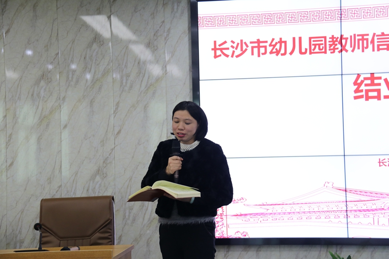 最后,阳艳波为优秀学员颁发了荣誉证书并寄语全体学员,希望本次培训能有效促进信息技术与幼儿园保教活动的深度融合,切实提高幼儿园教师信息技术应用能力和科学保教能力。
