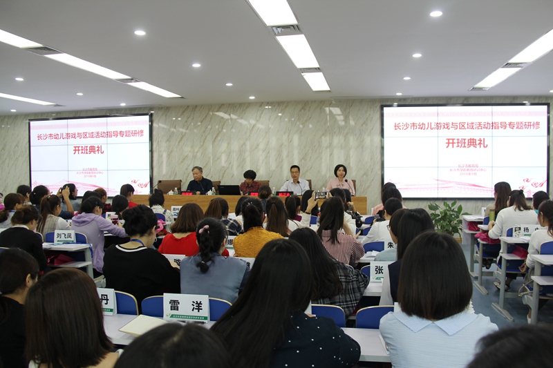 9月26日上午,长沙市幼儿游戏与区域活动指导专题研修班开班典礼在湖南省宁乡师范学校业馨楼5楼报告厅隆重举行。长沙市教育局党委委员、副局长缪雅琴,学校校长郭正良,党委书记张国斌出席典礼,来自长沙市十个区县(市)150名参培学员参加开班典礼,典礼由张国斌主持。