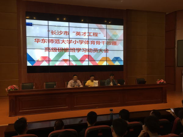 2015年10月17日上午,来自长沙市各区县的五十位小学体育老师在长沙市小学教师培训中心汇智厅,参加了华东师范大学长沙市小学体育骨干教师高研班的开班动员会,长沙市教育局教师工作处陈利群处长为学员们送行并送上殷切的祝愿,希望学员们要珍惜这次难得的异地学习机会,善学习,多思考,学成归来发挥好骨干教师的辐射带头作用,并叮嘱大家在外一定注意安全,服从管理,树立好长沙教师的良好形象。小教中心李慧中主任、师训科周建军科长向学员们介绍了学习行程及纪律要求,并表示会尽力做好服务和管理工作,为学员们在华东师范大学的学习和生活做好保障。