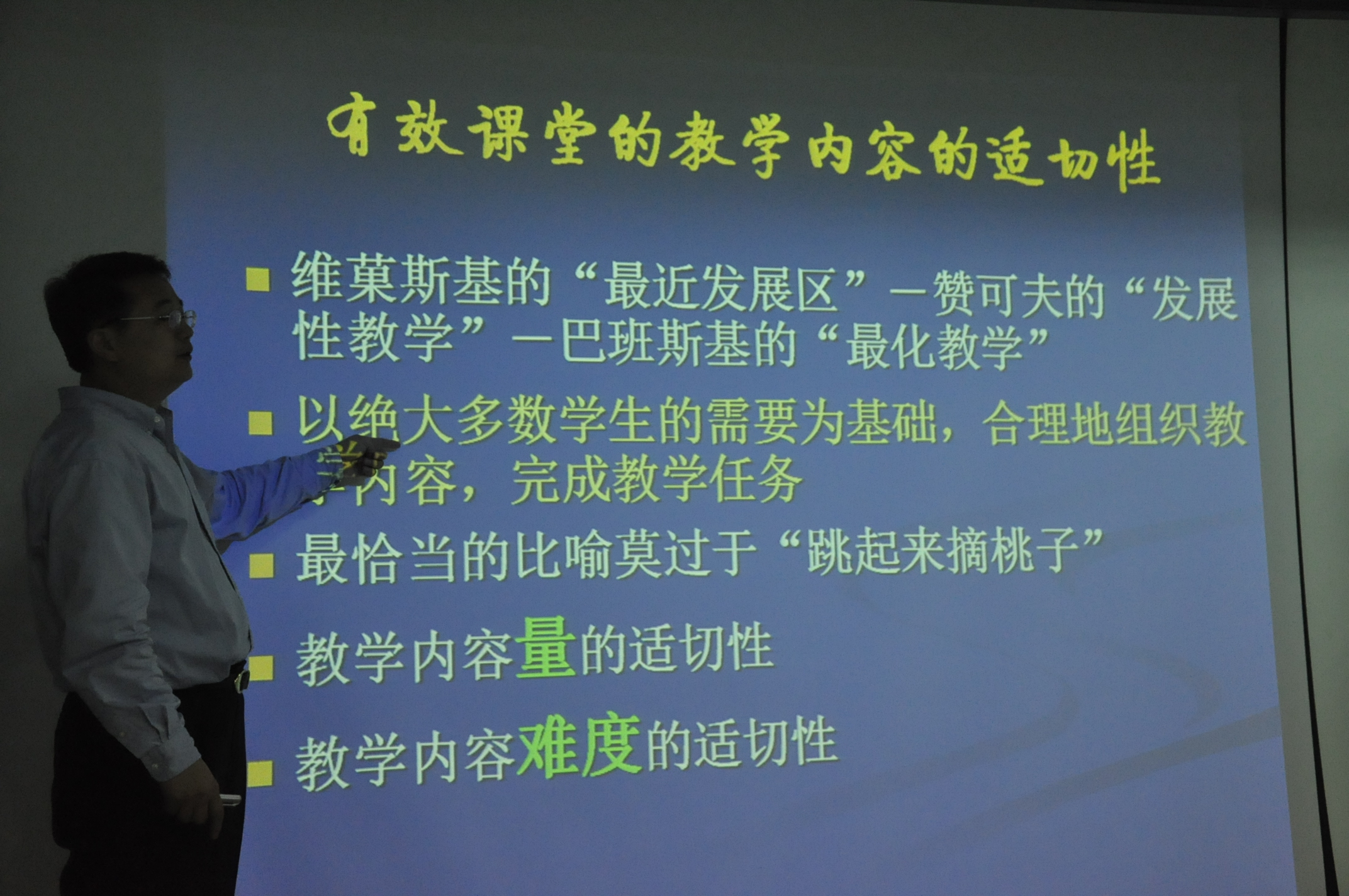 此次研修专家队伍阵容强大:有教授、教研员的精彩专业引领,也有北京市一线骨干教师与学员的亲切交流。北京师范大学赵希斌教授的讲座“语文教学中文本的内容分析”从知、情、意三个方面进行了精彩阐述,赵老师飞跃的思维,深厚的语文素养,渊博的学识让学员印象深刻。北京师范大学附属实验小学科研室主任,小学语文特级教师,北京市学科带头人陈延军老师,给学员进行了一场名为“在平凡的工作中寻找高尚”的主题讲座,陈老师分析了当前教师职业的现状与形势,分析了教学改革的前沿问题,倡导培养创新型教师让长沙的教师们受益匪浅。北京师范大学教育学院教授、硕士生导师、著名学者钱志亮带来一场名为“有效课堂哪儿来——兼论怎样上好一节课”的主题讲座。钱教授观点鲜明,独树一帜,从有效教学的概念、前提、条件、实施、评价等五个方面生动形象地阐述了如何上好一堂课。他认为在单位时间内高效、高质完成教学任务的课堂才叫有效课堂,而实现这些的前提是要有一个专业化的教师。讲座中,钱教授亲切幽默的语言、出神入化的演示,恰到好处的互动等已然成为有效教学最生动的示范。