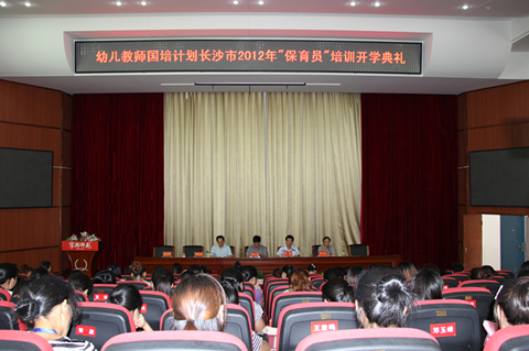 2012年7月2日上午,长沙市2012年“幼师国培”保育员培训班在我校汇智厅举行开班典礼,长沙市教育局教师工作处李超副处长,刘克甫副处长,我校校长、校“国培项目”领导小组组长郭正良,小教中心主任、副校长刘余良,培训科科长胡喜鸣,相关科室负责人及来自长沙市各区县的80名学员参加了典礼。典礼由我校副校长刘余良主持。