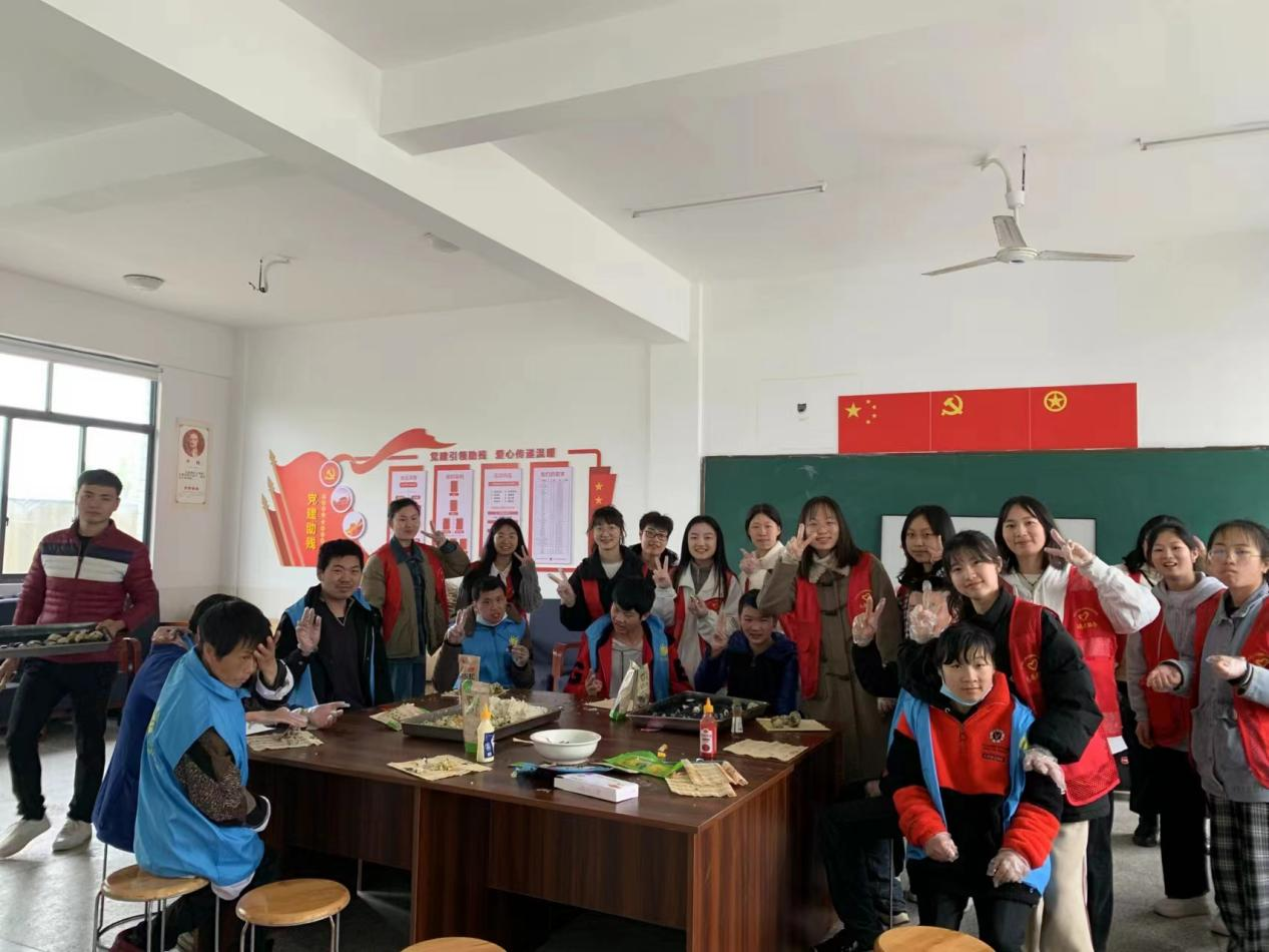 党员志愿者们精心准备了音乐活动、体育游戏、美食制作等一系列活动,让他们在精神上得到了关怀和温暖,在生活上得到了贴心照顾。党员教师丰丹结合自己专业优势设开展了体育游戏《快乐之家》,入党积极分子邓艳婷开展了音乐律动《噜哩啪啪》,志愿者们还结合他们的饮食特点一起制作了美味的寿司。一系列活动的开展让欢声笑语响彻了整个活动室。学前教育学院党总支书记兰帅说:我们学前师生会继续依托专业知识,以专业技能助力社区服务。