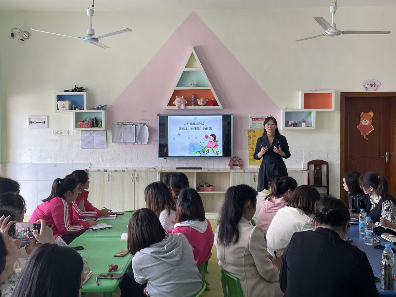送教下乡专业指引👨‍✈️。结合宁乡市娃哈哈幼儿园环境创设的弱点与可利用的资源,学前一支部党支部书记闵捷开展了主题为《农村幼儿园低成本有质量的环境创设》的专题讲座⏸,提出有针对性建议,解决了宁乡市娃哈哈幼儿园资源开发与利用方面的困惑👨🏽‍⚖️。