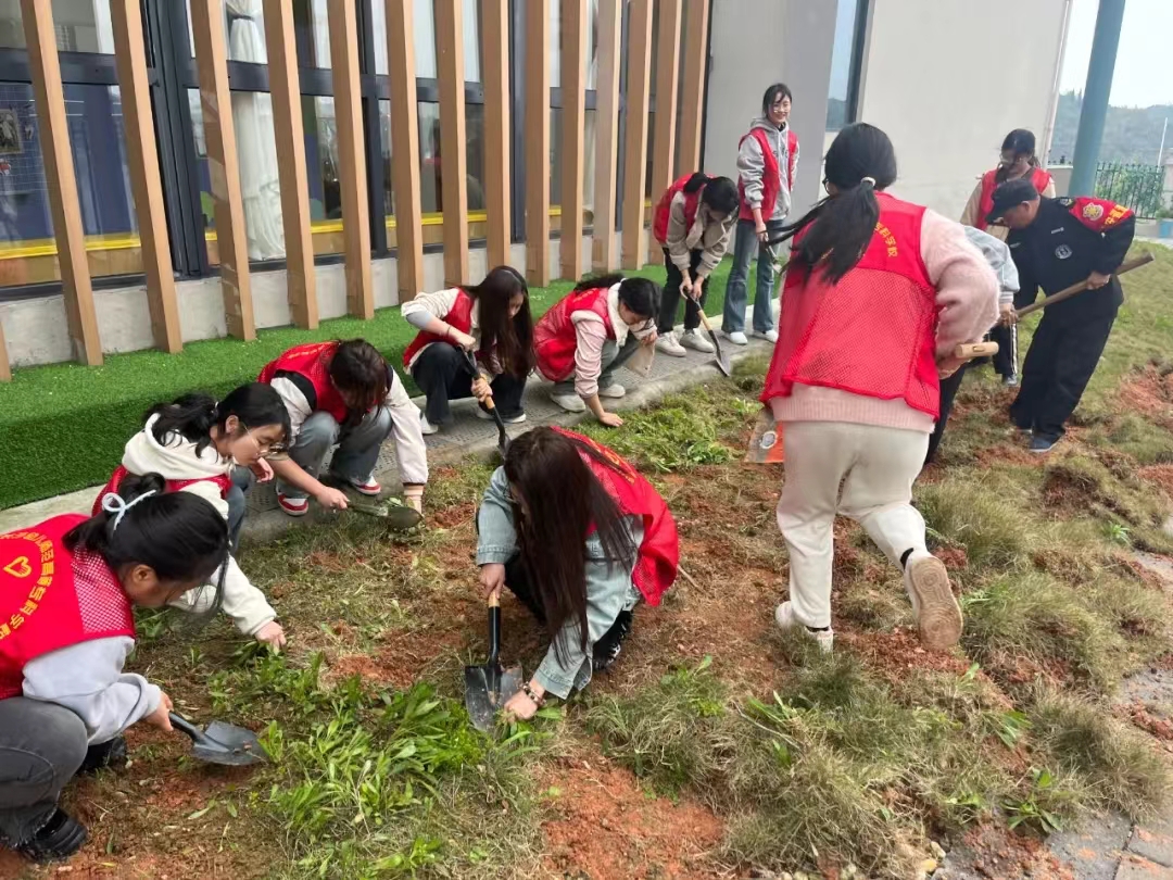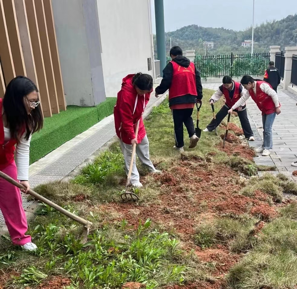 下午五点钟,入党积极分子们又带领18名2023级学妹们加入了志愿服务的行列,这些年轻的面孔,带着对社会责任的担当和对未来的憧憬,继续着这项充满意义的活动。他们不仅继续进行翻土工作,还协助幼儿园的教师们进行环境创设,为孩子们营造一个更加温馨和富有教育意义的成长空间。
