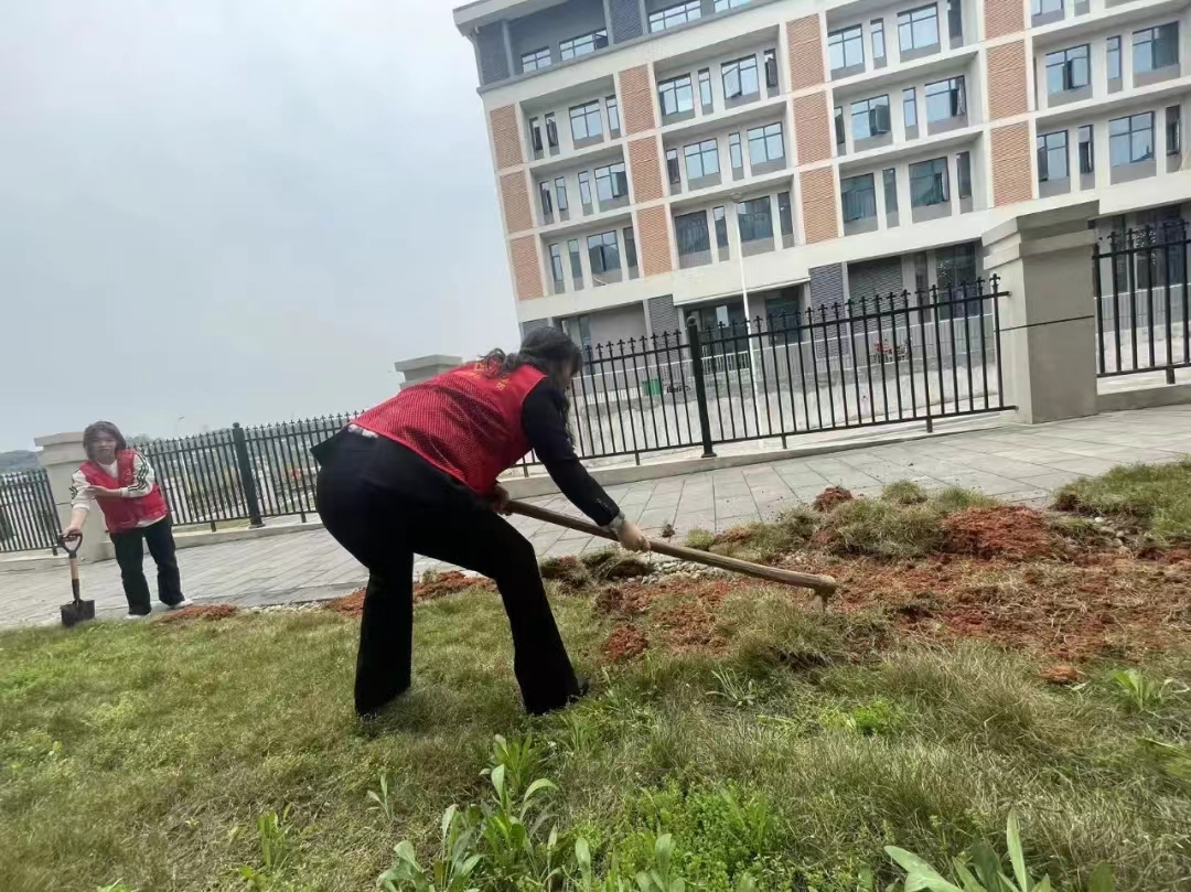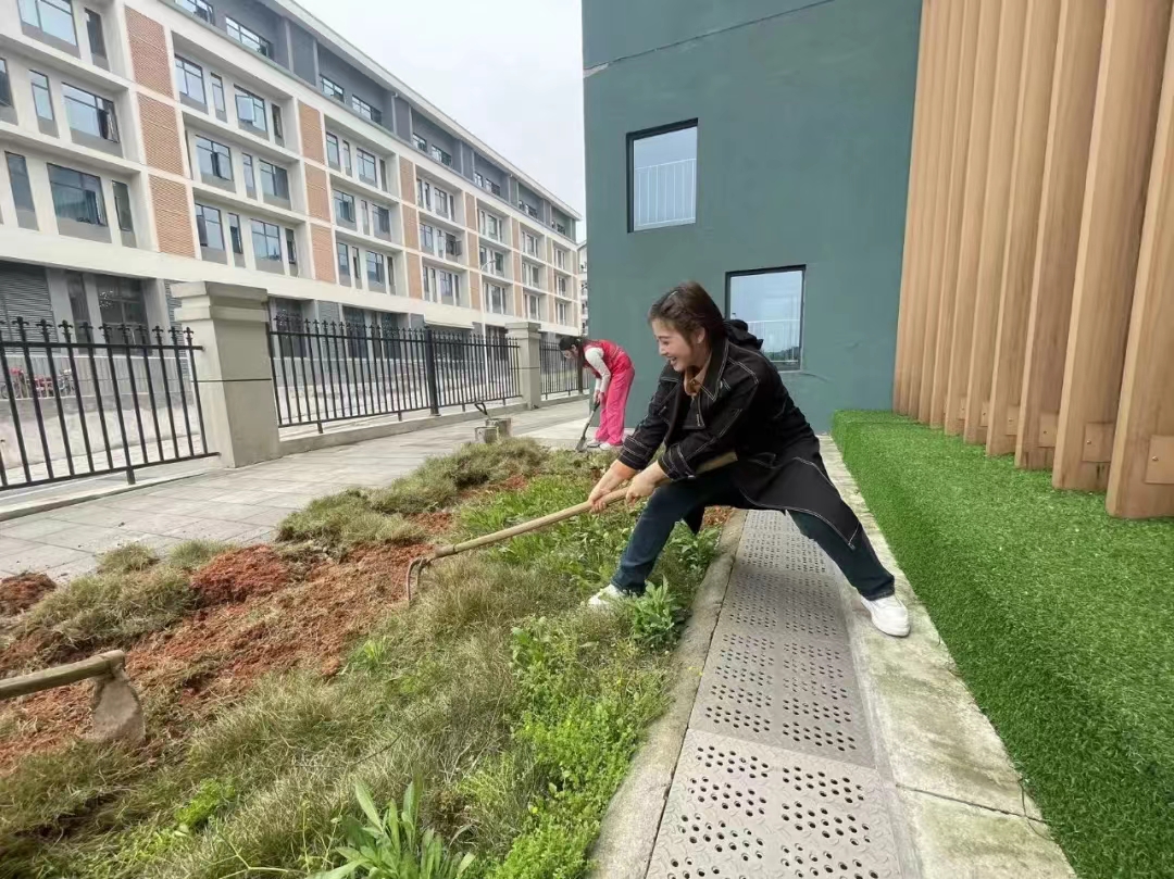 在学前第一党支部书记兼附属幼儿园园长闵捷和副园长裴珊珊的带领下,志愿者们齐心协力,有的手持小铲,细心铲除着杂草和石块;有的则挥舞着锄头,用力挖掘,为种植基地的平整打下坚实基础。还有几名志愿者推着拖车运送草皮和土壤。虽然工作量较大,但大家的热情丝毫不减,一个多小时的辛勤劳作后,草坪已经呈现出一片新的面貌。