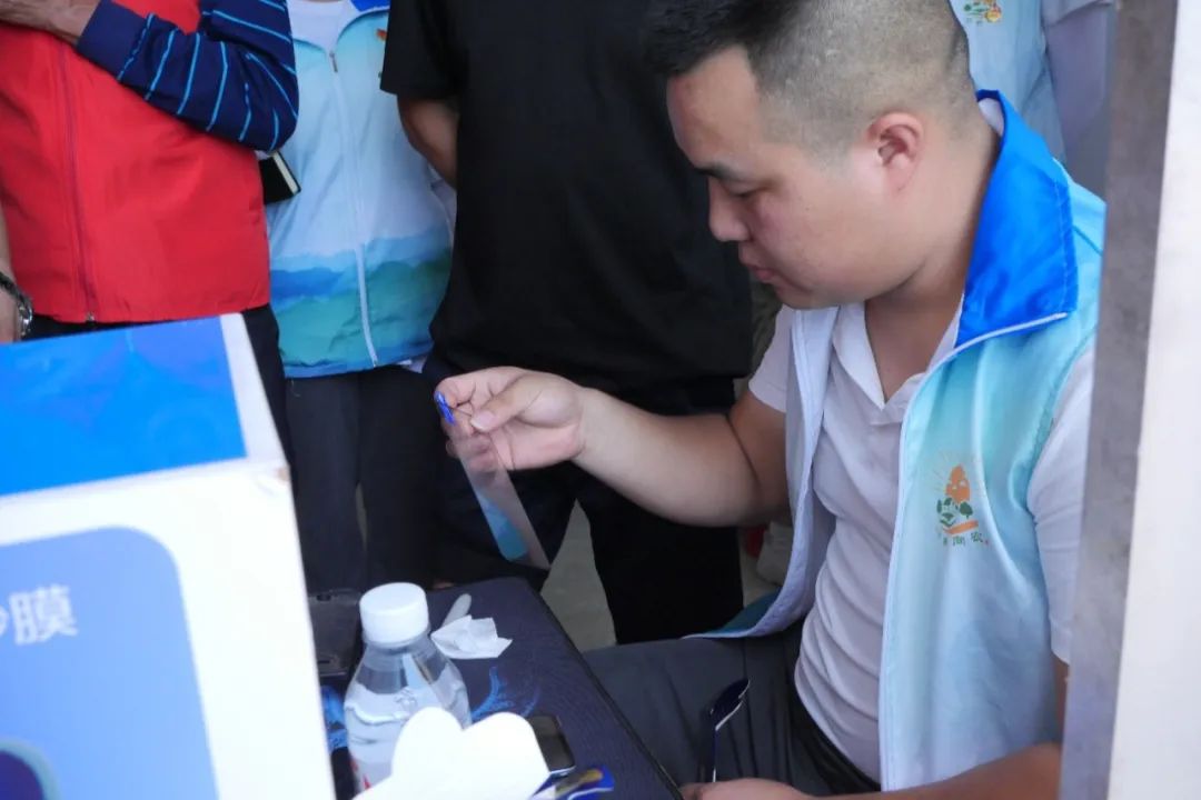 23级数字媒体专业的陈英姿同学作为志愿服务队的专业摄影师,架起了简易的证件照拍摄棚,为村民与学子们拍摄证件照。镜头下,每一张笑脸都被细心捕捉,定格成美好瞬间。志愿者们细心服务,耐心周到,展现了志愿精神,传递着温暖与关怀。