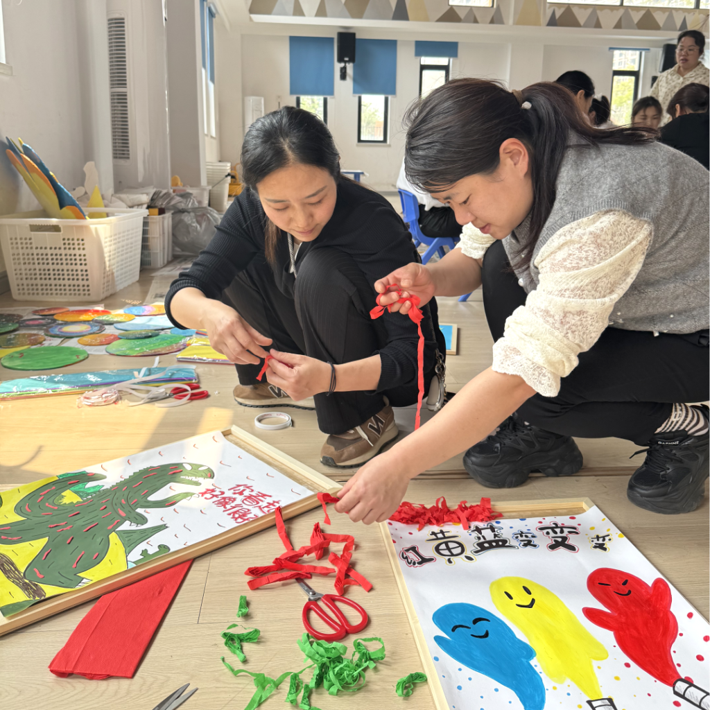 冯羽茜、陈晓玲、刘晓、熊芳等党员教师组成“工匠导师团”🍎🧗🏻♀️,带领“沐苗朝阳”志愿服务队,以“带项目👩🏼🎨、带技术👩🏿、带理念”的“三带”机制✡︎,为国宾府幼儿园打造沉浸式美育空间🚭。