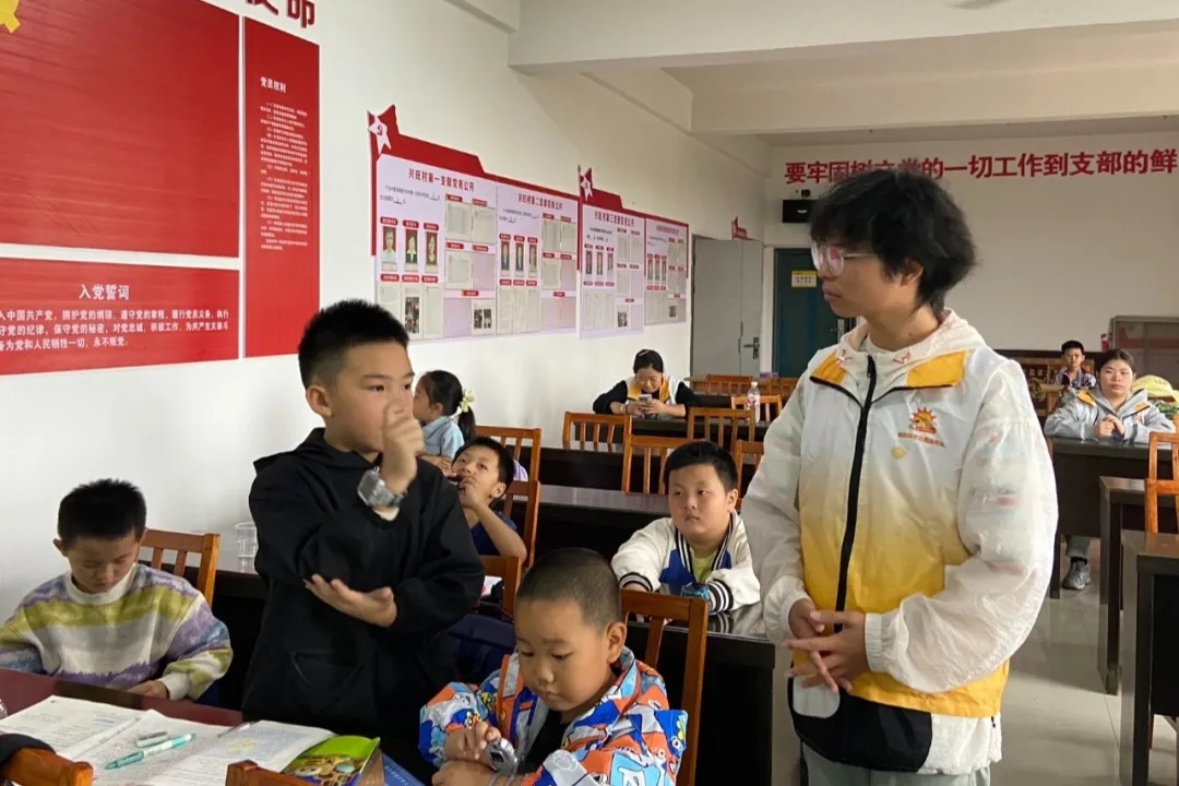面对部分孩子前后鼻音混淆、平翘舌不分等问题🤰🏿,志愿者们不仅用通俗易懂的比喻讲解发音原理,还通过“口型示范+手势辅助”帮助孩子们直观感受差异。