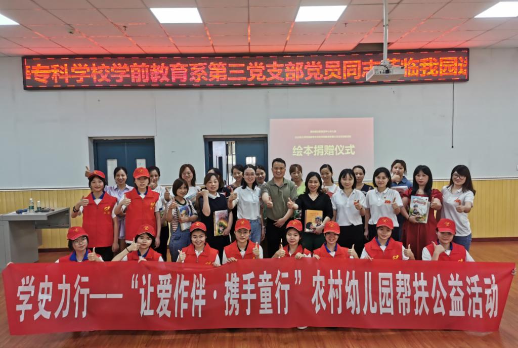 送教下乡一直是我校常态,我校学前教育系第三党支部与黄材镇中心幼儿园建立了长期交流关系,定下了定期送教,到校学习等下阶段安排。我校学前教育系致力发挥自身优势,带动地方教育发展,在缓解乡镇幼儿园的发展困境与人才需求上出力,以自身力量践行“我为群众办实事”,把党史学习教育成果转化为工作实效。