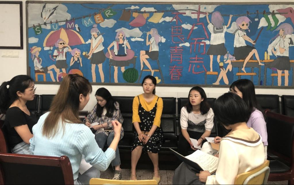 课后,在罗萌老师的主持下,鲁双老师与新进教师 “对话”,展开研讨。首先,鲁双老师介绍了本次示范课教学设计的基本思路,点明了教学目标及重、难点,并进行了教学反思;接着,新进教师依次谈收获、谈感想,均表明收获满满;最后,新进教师就现阶段疑问与组内教师进行交流。
