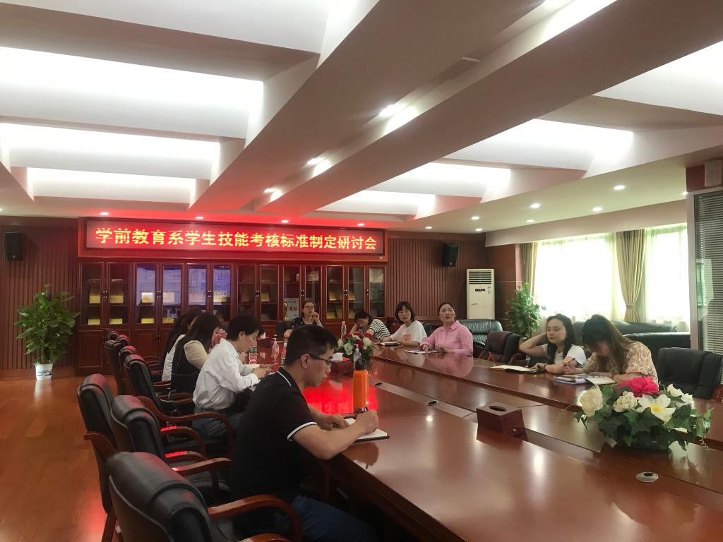 2021年6月1日下午,学前教育系学生技能考核标准制定研讨会在广益厅召开。神彩争霸8安卓下老版本学前教育系主任阳艳波、学前教育系各教研室主任及各课程主要负责人参加会议,会议由阳艳波主持。