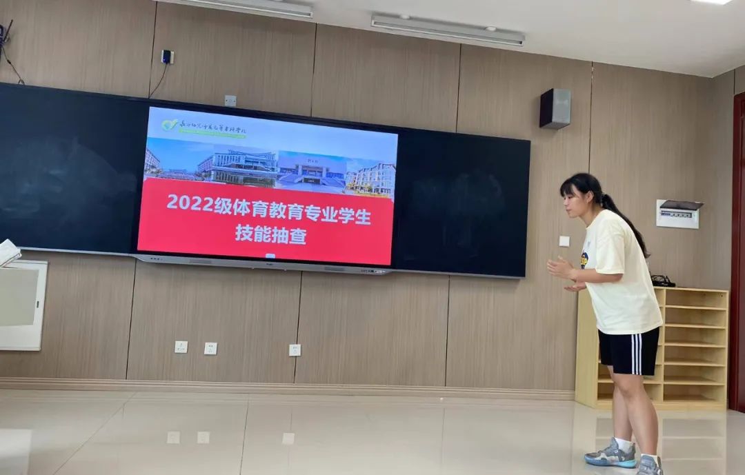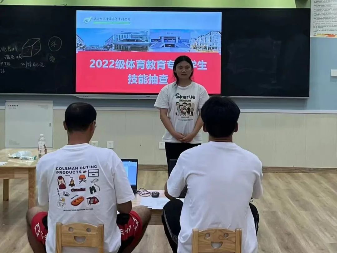 为检验专业人才培养质量,检查学生专业技能水平,全面掌握学生技能薄弱点,以考促建、以考促教、以考促学,推进专业建设和专业教学高质量发展,6月18日下午,2022级体育教育专业开展了技能抽查考核。