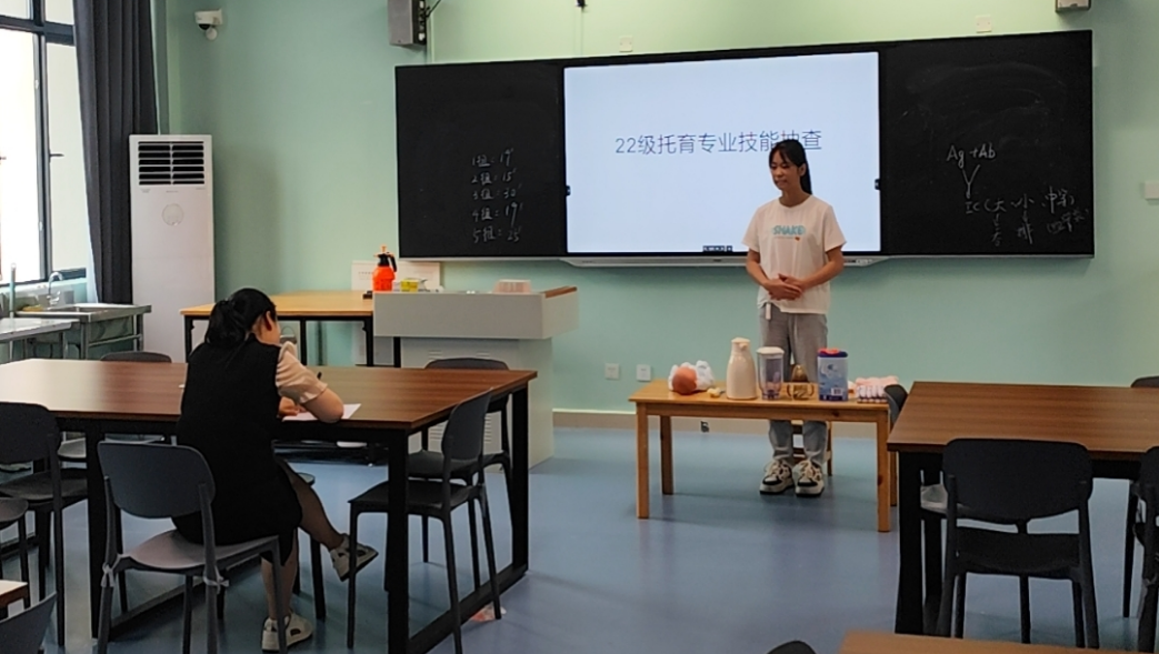 为检查同学们的专业技能学习与掌握情况,学前教育学院婴幼儿托育服务与管理专业特此开展技能抽查。本次抽查严格按照2022级婴幼儿托育服务与管理专业技能考核标准与题库实施,考核内容包括专业基础技能、专业核心技能和专业拓展技能模块,共有来自22级的92名学生参加。