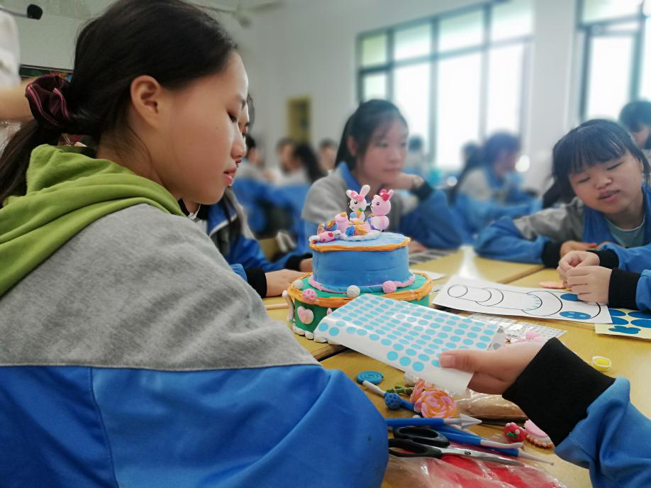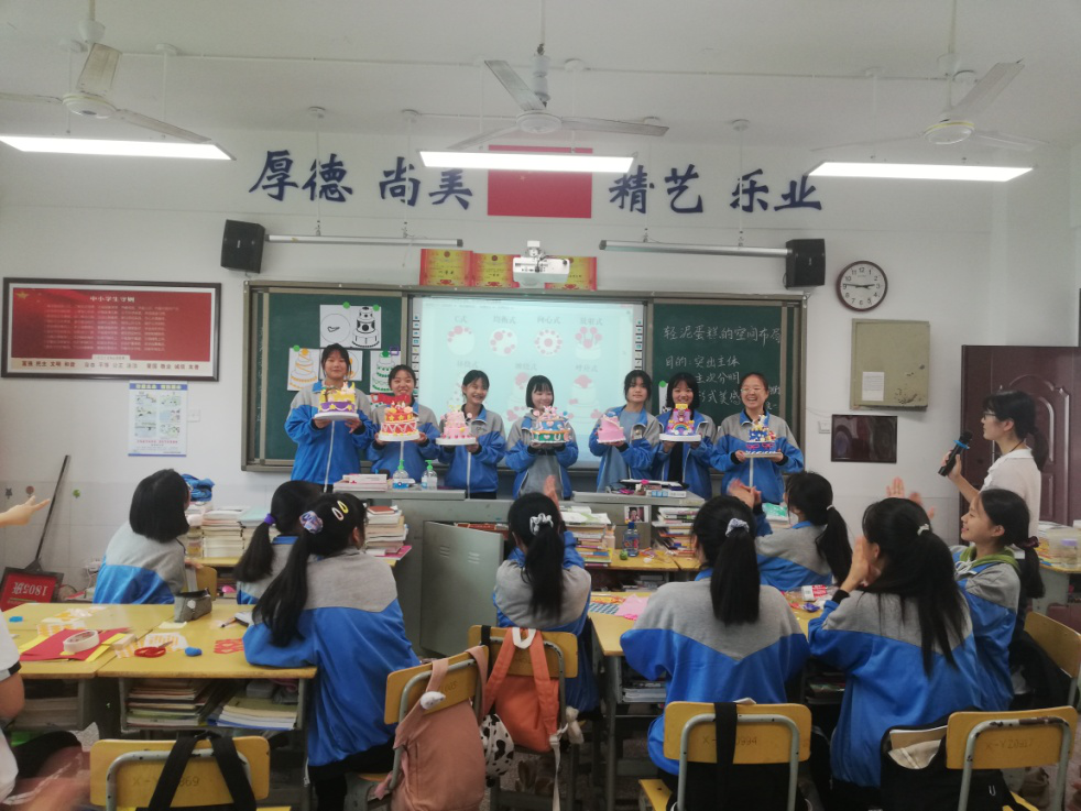 课堂上,谭莘老师创设了有趣生动的情景,以“为祖国庆生”为选题,融入思政元素,着眼于对学生作品制作的过程指导。精彩的授课,阵阵的掌声,学生们从中感受着生活与美术的融合。