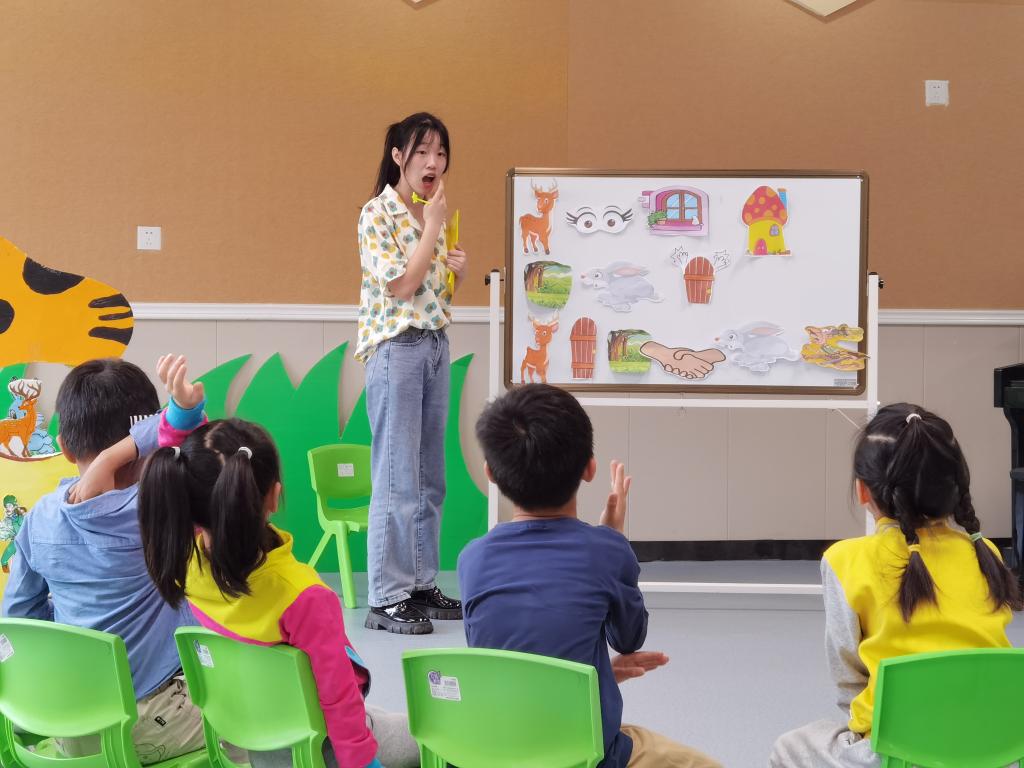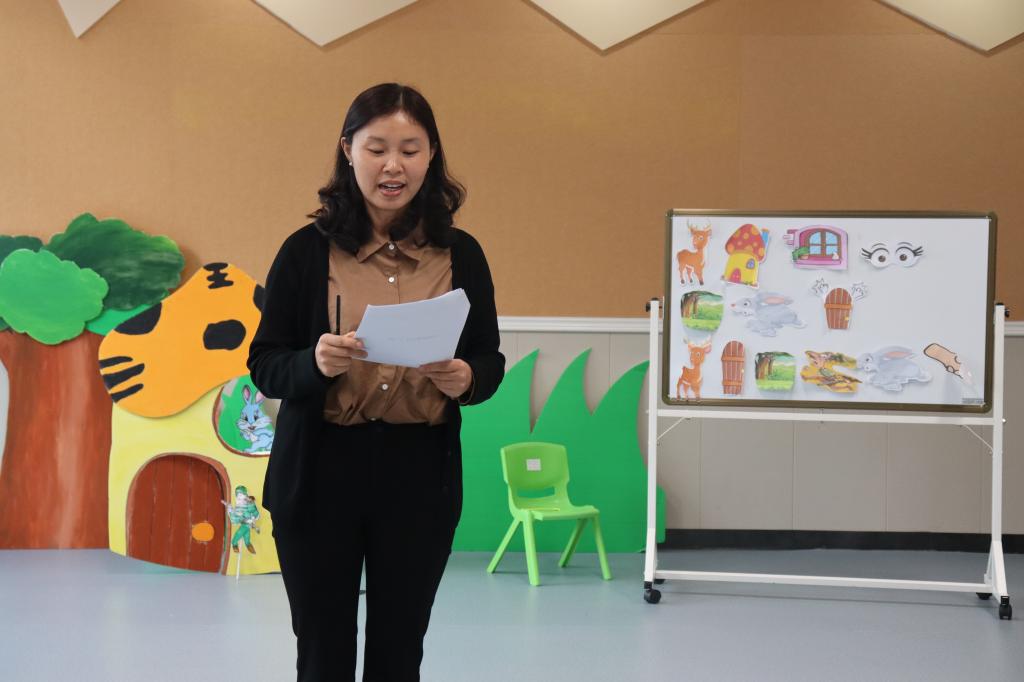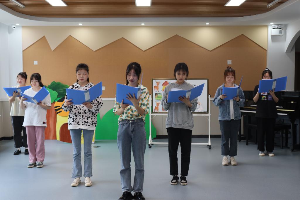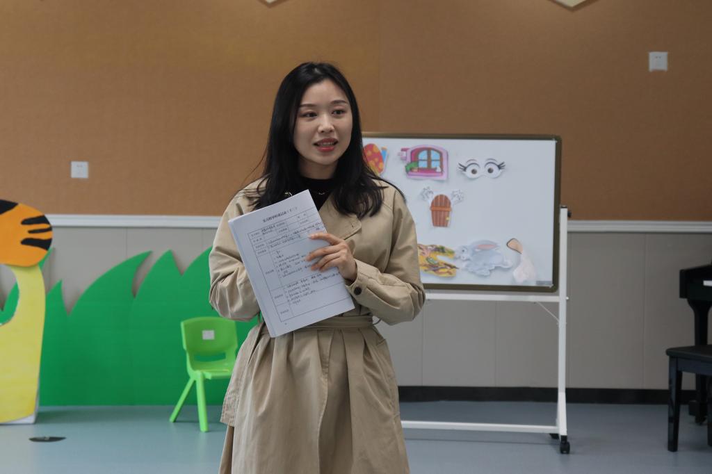 在岳麓集团第二幼儿园的带教老师和实习指导老师的悉心指导下,实习生精心准备了教学活动的汇报。叶钰洁同学教态自然大方、语言生动,良好的师幼互动和轻松活泼的活动氛围给老师们留下了深刻的印象。叶同学的歌唱活动《大鹿》,通过情境表演、图谱、游戏等教学策略帮助幼儿感受大鹿这首歌曲的趣味性,理解歌曲传达的故事性,并激发孩子保护野生动物的情感,获得了园长和老师们的一直好评。