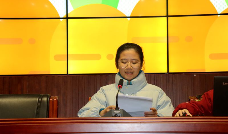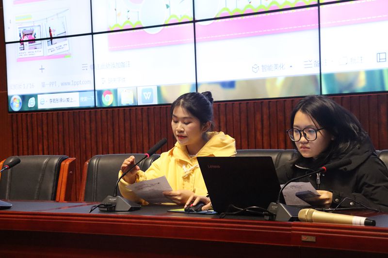 会议第三项,由胡艺晖、谭万莉、罗佳慧、杨愠景、李漩五位同学代表各班级进行见习汇报。她们利用图片、视频等多种方式,从见习工作概况、见习感悟、见习目标等几方面汇报了见习活动的开展情况,有感想有收获有目标。