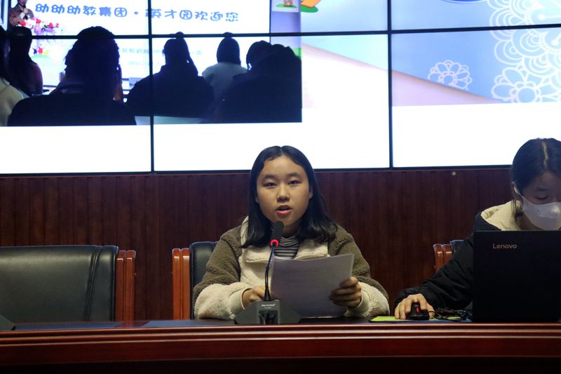 会议第二项,雷碧洋作为教师代表从学生见习表现与效果、见习所存在的问题两方面进行发言。她对见习期间同学们展现出的幼师综合素质给予高度肯定与表扬。也对以后的教育实践提出了很好的建议。