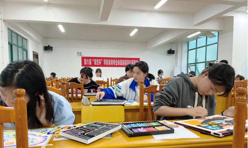 为检验学前教育系各专业教学成果,提高学生师德素养、专业知识、职业素养、综合育人能力和创新水平,以赛促教、以赛促学、以赛促练、以赛促改,形成浓厚的教学教研教改氛围,在学校统一部署和系部精心组织下,第六届“精艺杯”技能节学前教育系各专业赛项于5月9日拉开帷幕,其中命题画比赛分别于14日、23日举行初赛和决赛,共有58名学生参与。