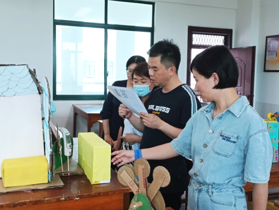 本次比赛学生紧扣“技能成才、强国有我”的主题,紧紧围绕学前教育专业特点,以幼儿教育教学的玩具和教具设计为亮点,充分利用生活中废旧的纸盒、易拉罐,废旧布料纸张毛线等材料,将其“化身”为庄严的“天安门”、威武的机器人、科幻的火箭和有趣的皮影,形成中国航天、宏伟天安门、律动机器人等优秀作品。作品变化多端,类型丰富,展示了学生丰富的想象力、动手能力,提高了大家环保意识,抒发了自己对祖国大好河山、灿烂文化和科技探索的美好追求!赛后,在公平竞技、公开透明、公正规范的原则下,评委组对学生的作品从材料利用、制作工艺、思想内涵、艺术创新等方面进行了现场评价。