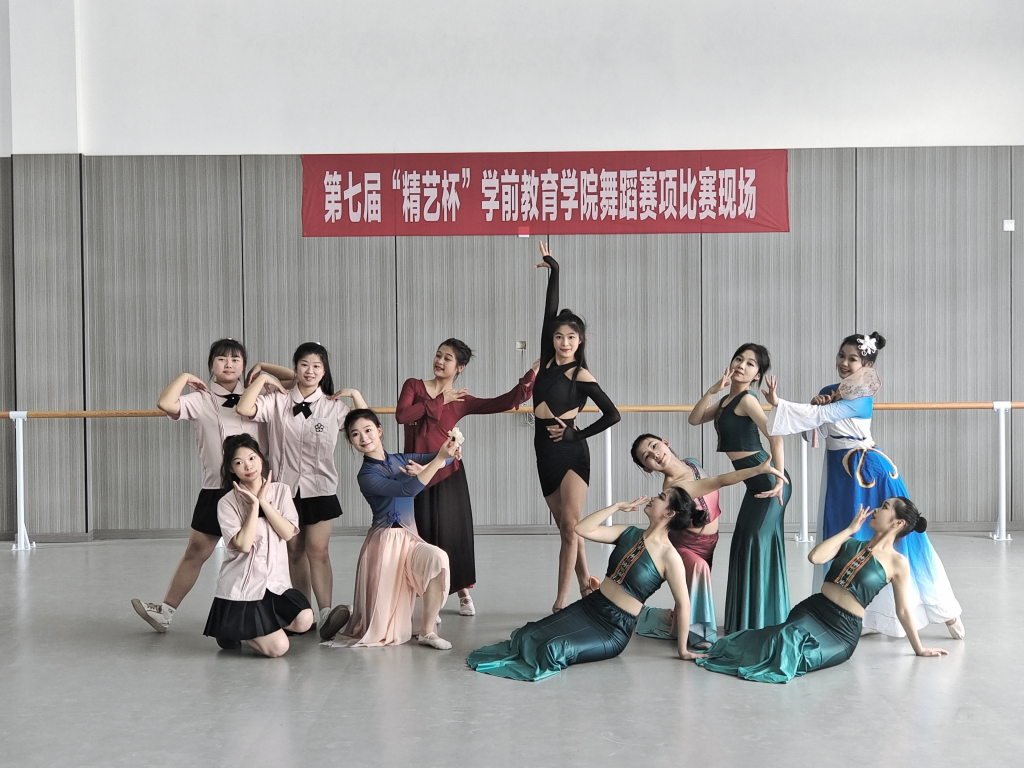 为检验学前教育学院各专业教学成果,提高学生师德素养、专业知识、职业素养、综合育人能力和创新水平,以赛促教、以赛促学、以赛促练、以赛促改,形成浓厚的教学教研教改氛围,在学校统一部署和学院精心组织下,第七届“精艺杯”技能节学前教育学院各专业赛项于5月4日拉开帷幕,其中舞蹈赛项于5月4日和11日分别了举行初赛和决赛,共有54名学生参与。