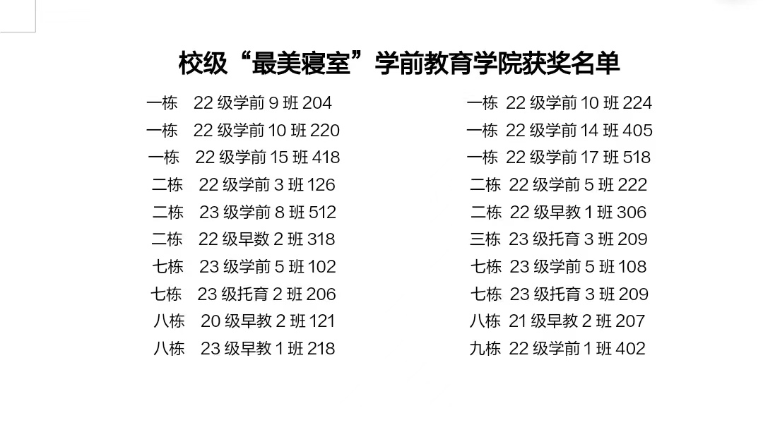 本次寝室文化节在大家的载誉而归中落下帷幕,通过本次活动,各寝室成员在合作中深化了友谊,融洽了寝室氛围,扩大了校园宿舍文化的影响力。