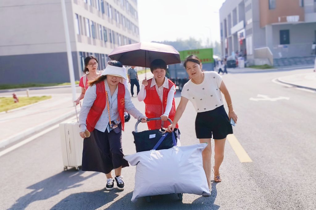学校党委书记肖思源、校长李毅等学校领导来到彧馨楼,与新生们亲切交流,向他们表示热烈欢迎,并慰问关怀现场的工作人员与志愿者们