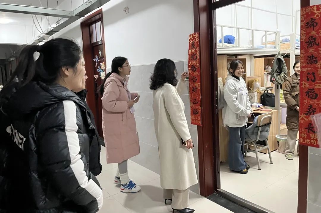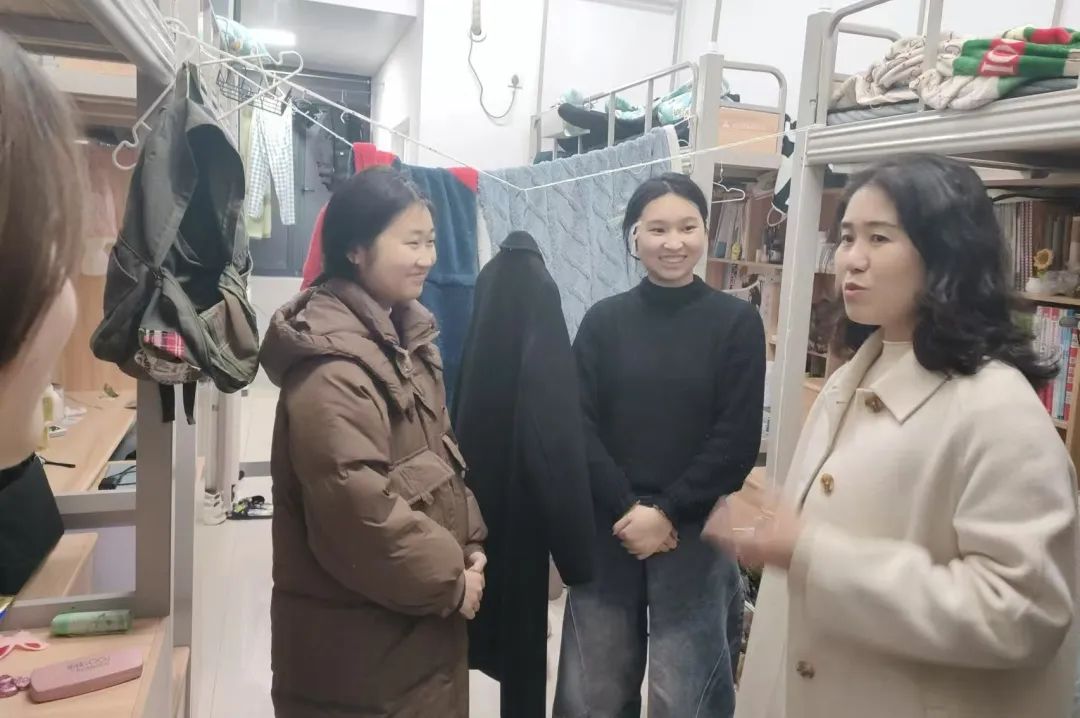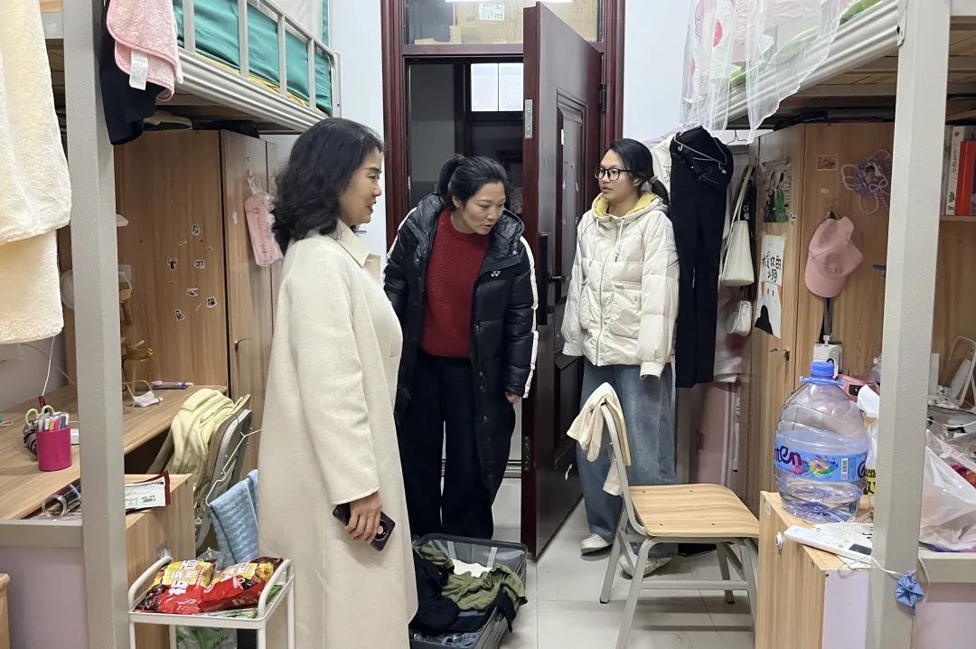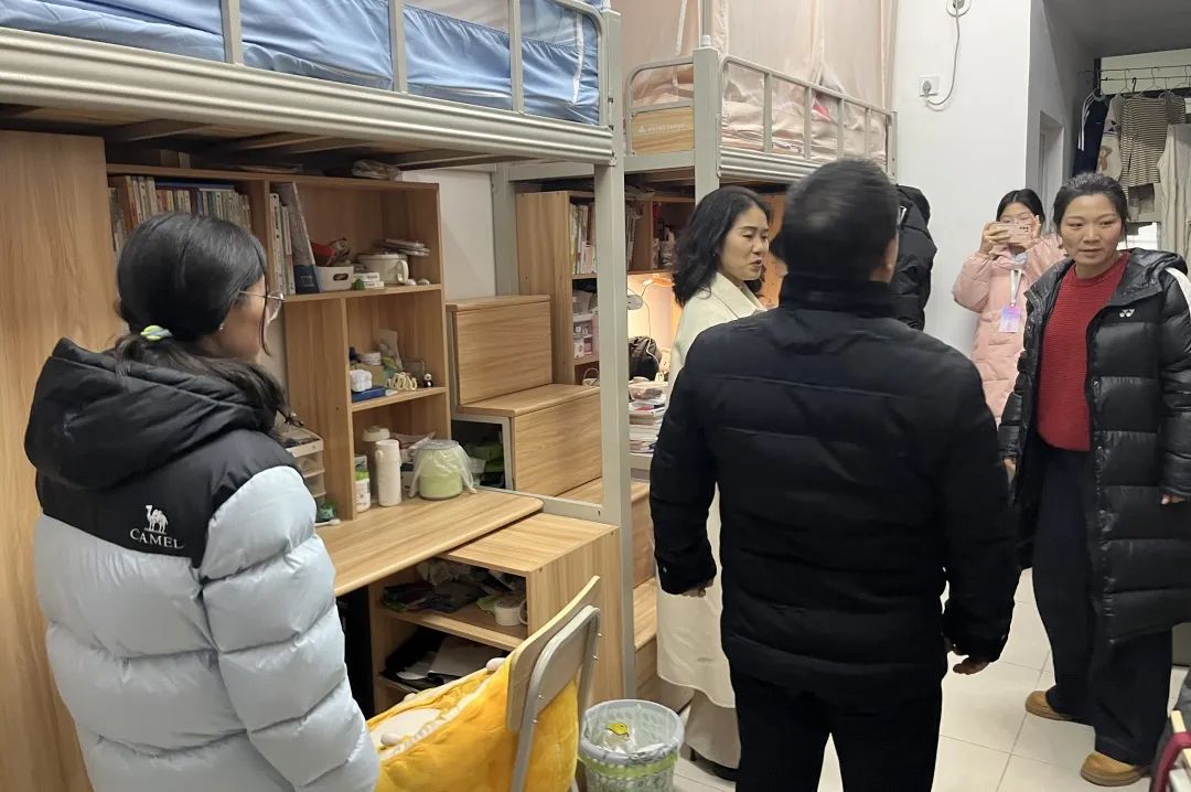 同时,巡查队伍还逐一走访宿舍,与同学们亲切交流,询问假期生活情况及新学期学习规划。并叮嘱同学们严格遵守宿舍管理规定,做好防火防盗。特别是注意春季气温变化,及时调整作息,保持宿舍通风整洁,预防春季流感。