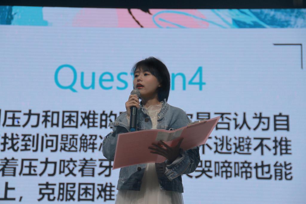 首先由主持人讲解心理健康的相关知识,使全体师生进一步了解了心理健康的重要性。现场,她们用事例告诉同学们要用阳光的心态来对待在学习和生活中所遇到的困难和问题,呼吁同学们要关注心理健康,学会管理情绪、学会面对问题与解决问题、学会自主调整,以饱满的热情投入学习、以满腔的热诚投入生活。