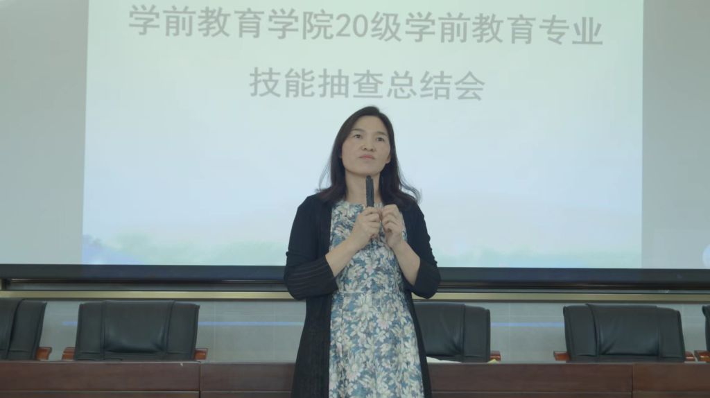 各模块负责人对本次技能考核的情况进行总结与分析,给同学们提炼经验。李君俐针对保育模块详细给学生介绍考试流程及注意事项;吴艳芳通过三个问题与同学们一起总结游戏模块的考核经验;王俊杰从教案的书写、面试的教姿教态、活动的设计流程等方面给学生进行梳理;陈郁从考试的流程、站姿、手势、布局示范图等方面给大家进行了环创模块的总结。