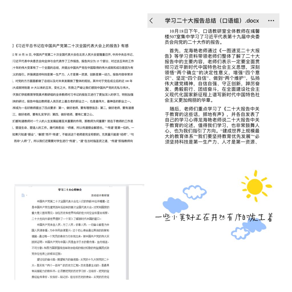 学前教育学院如火如荼地开展了党的二十大报告学习会。全院教师一定会贯彻落实党的二十大精神,认真学习和深刻领会习近平总书记的报告,以党的二十大精神和习近平总书记的报告为引领,推进各项教育教学工作再上新台阶,以更大的责任担当完成学院的使命,为新时代中国特色社会主义事业作出应有的贡献。