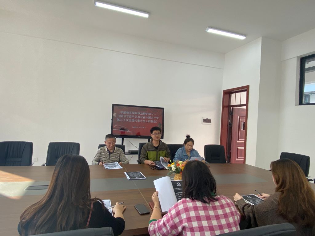 10月18日下午14:00 ,学前教育学院组织院办、辅导员、各教研室开展了学习党的二十大报告会议,会议采用了线上与线下相结合的形式,学前教育学院党总支书记兰帅引领老师们认真学习了习近平总书记所作的工作报告,大家热议着中国共产党带领中国人民创造的历史成就,憧憬着新时代新征程上的光辉未来。