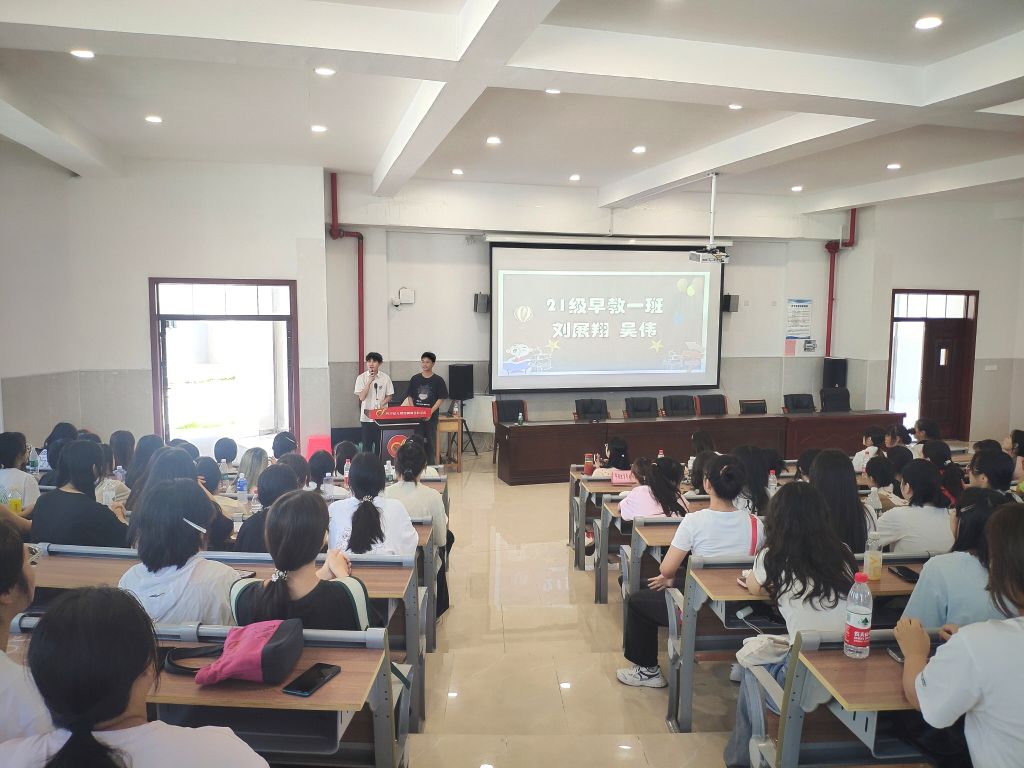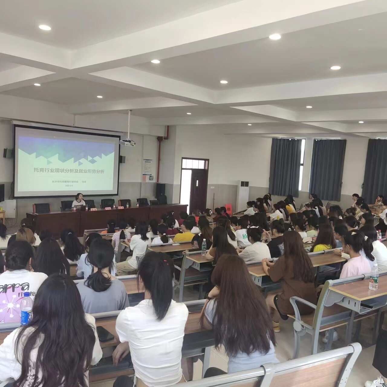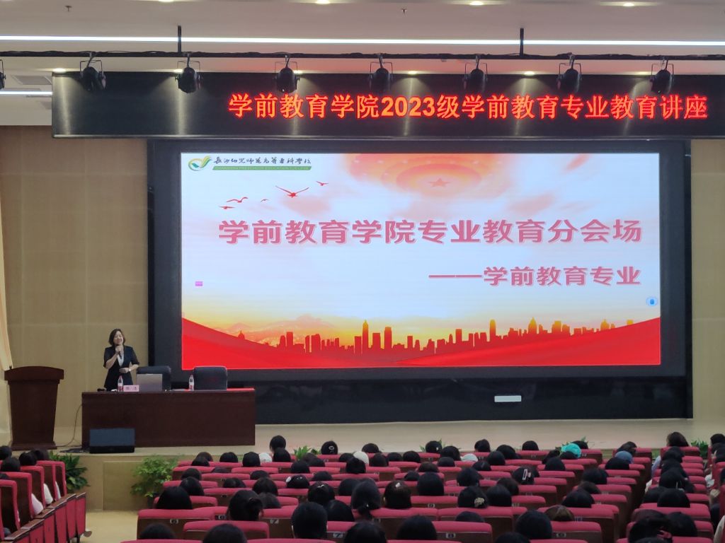为深入贯彻国务院办公厅《关于深化高等学校创新创业教育改革的实施意见》,进一步增强高校大学生创新创业教育实效,9月17日,学前教育学院特邀长沙市教育局幼儿园张洁园长,长沙市托育服务行业协会马洁会长,湖南省胸科医院张胜康主任,长沙新希望体育服务有限公司林品总经理给2023级全体新生开展专业教育,学院领导,各专业负责人及核心团队成员。