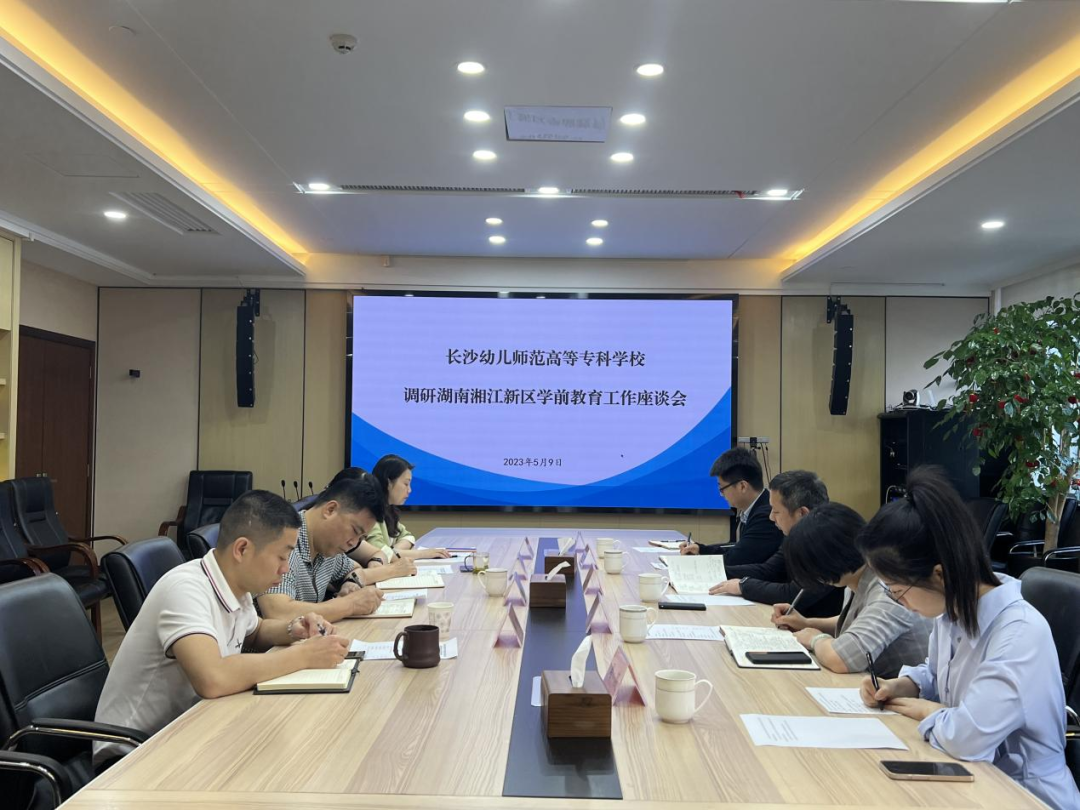 2023年5月9日,校长李毅、学前教育学院院长阳艳波、学前教育学院党总支书记兰帅等一行五人赴湘江新区教育局进行访企拓岗,调研学前教育教育事业发展现状。