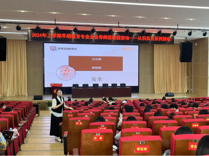 2024年5月29日上午,为进一步提升学生的专业技能和早期教育专业的教育质量,学前教育学院在图书馆报告厅成功举办了以“婴幼儿活动设计与指导”为主题的企业导师进校园的讲座。此次讲座旨在指导学生如何开展专业活动,提升学生专业技能。