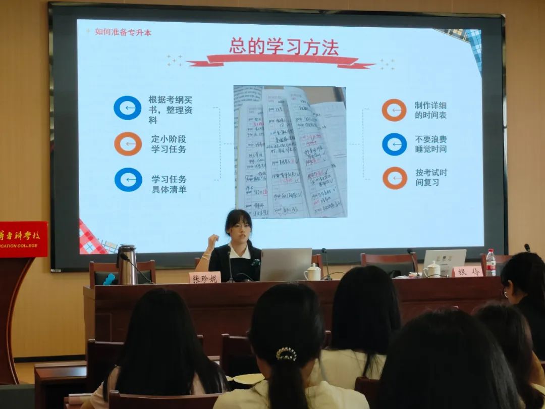21级学前7班学姐张珍妮从“为什么要准备专升本”“如何准备专升本”“择校以及专业选择”“答疑解惑”这四个部分展开,深度分析了专升本的学习方法和策略,明确了大学生对专升本的认知,并解读了当下我国大学生专升本的现状与对策。