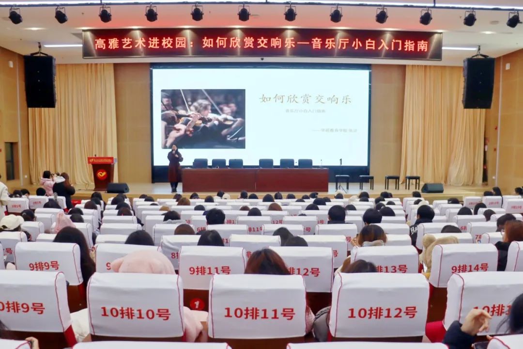 本次讲座由张洁老师主讲,她以其独特的音乐视角,深入浅出地为师生们讲述了交响乐的历史渊源、乐团构成、观演礼仪等内容。通过细致入微的赏析和讲解,向广大师生普及交响乐知识,提升鉴赏能力。