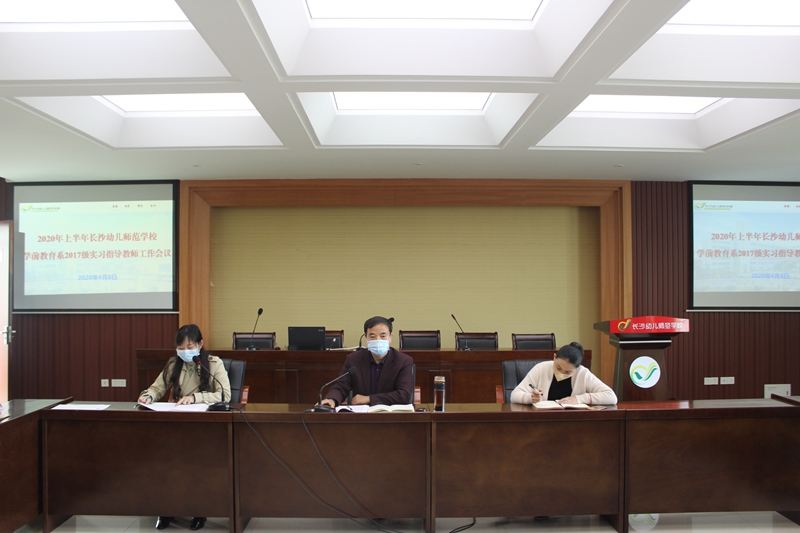 2020年4月8日下午,学前教育系2017届教育实习指导教师工作会议在道馨楼宁觉厅召开,招生就业科科长何重兴、学前教育系主任阳艳波、学前教育系副主任闵捷以及12名实习指导教师及相关班主任参加会议,会议由闵捷主持。