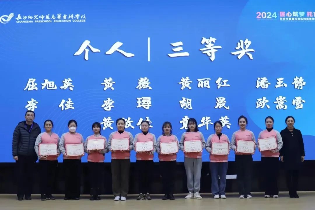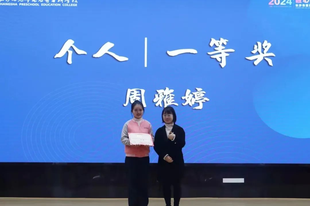 2024年1月13日长沙市首届托育机构保育师职业技能竞赛落下帷幕,我校附属幼儿园在本次比赛中喜获佳绩。附属幼儿园教师周雅婷以全场最高分的成绩荣获个人“一等奖”,教师黄薇荣获个人“三等奖”。在此,特向全校师生报喜!
