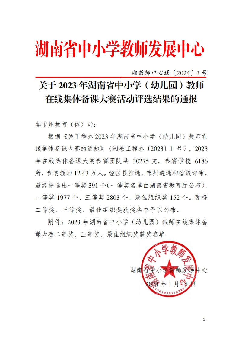 神彩争霸8安卓下老版本附属幼儿园参赛团队在2023年湖南省中小学(幼儿园)教师在线集体备课大赛中荣获二等奖。
