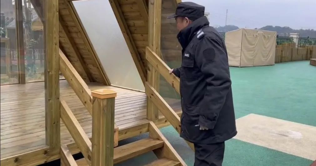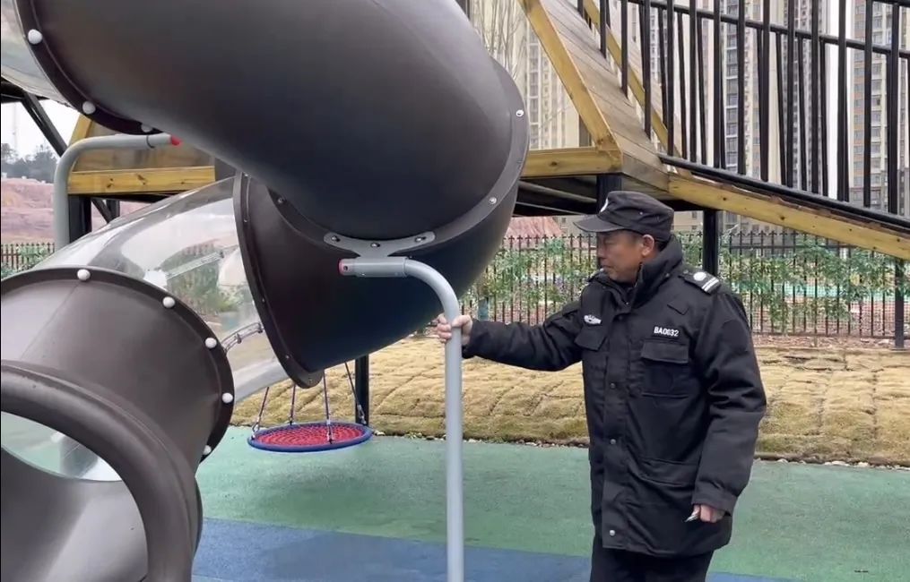安全检查小组成员还仔细检查了幼儿园户外环境、户外攀爬大型玩具,查看是否牢固,零件有无破损、松动,同时清理了草坪中的异物,保障幼儿安全游戏。